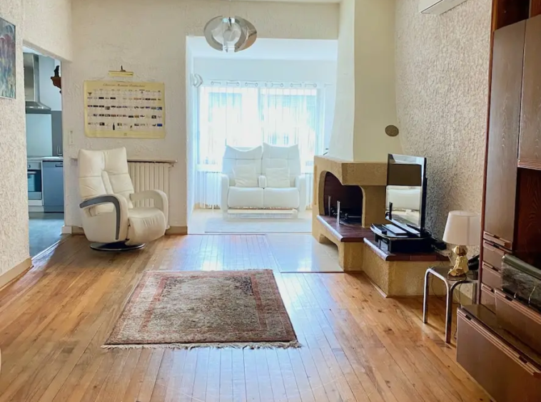une spacieuse et lumineuse pièce de vie, agrémentée d’une cheminée pour les soirées d’hiver
