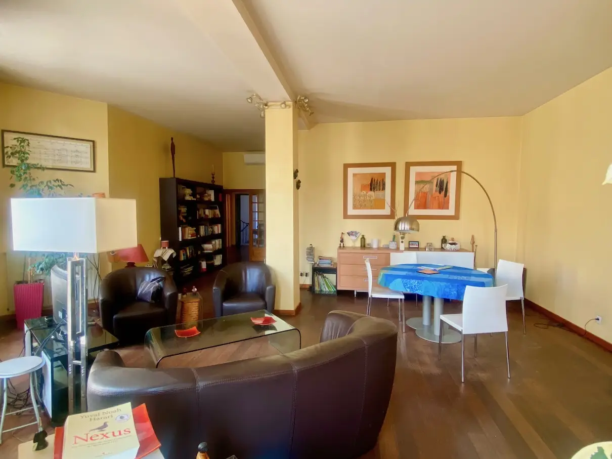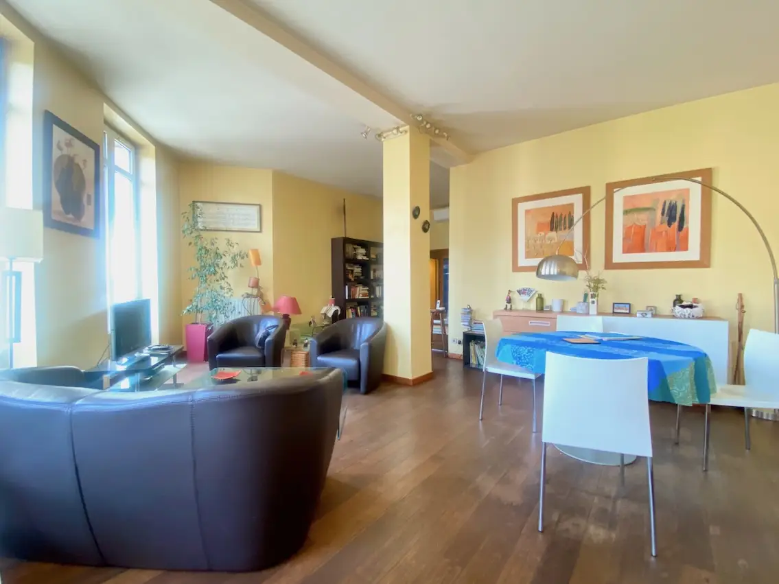 • une vaste pièce de vie traversante de 46 m² claire et lumineuse grâce à 4 vastes doubles fenêtres,